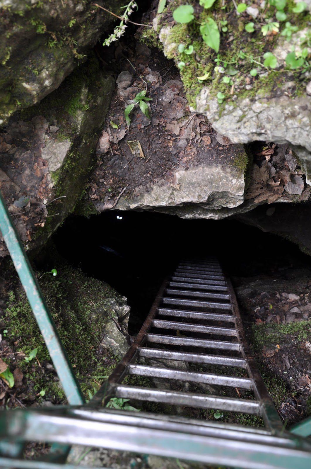 The 22' down ladder. Climbing down into the hole